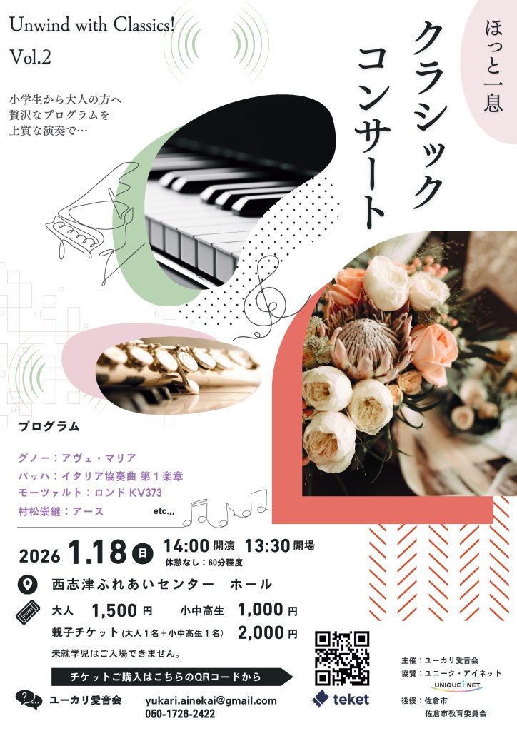 2026/1/18(日) 14:00〜”ホッとひと息”クラシックコンサート